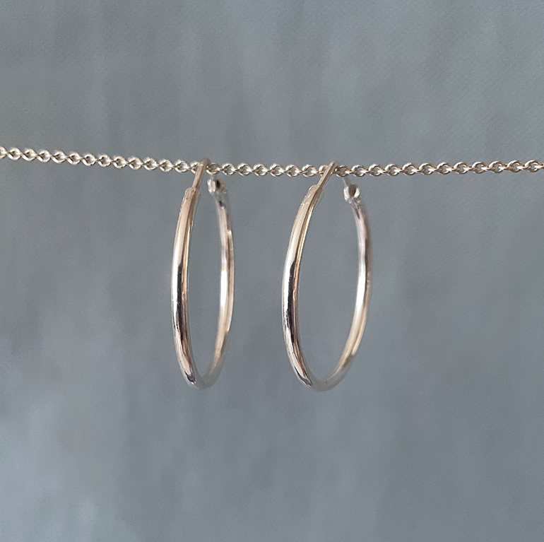 Créoles lisses 28 mm, fermeture tige à l’intérieur du tube. 28 mm de diamètre.